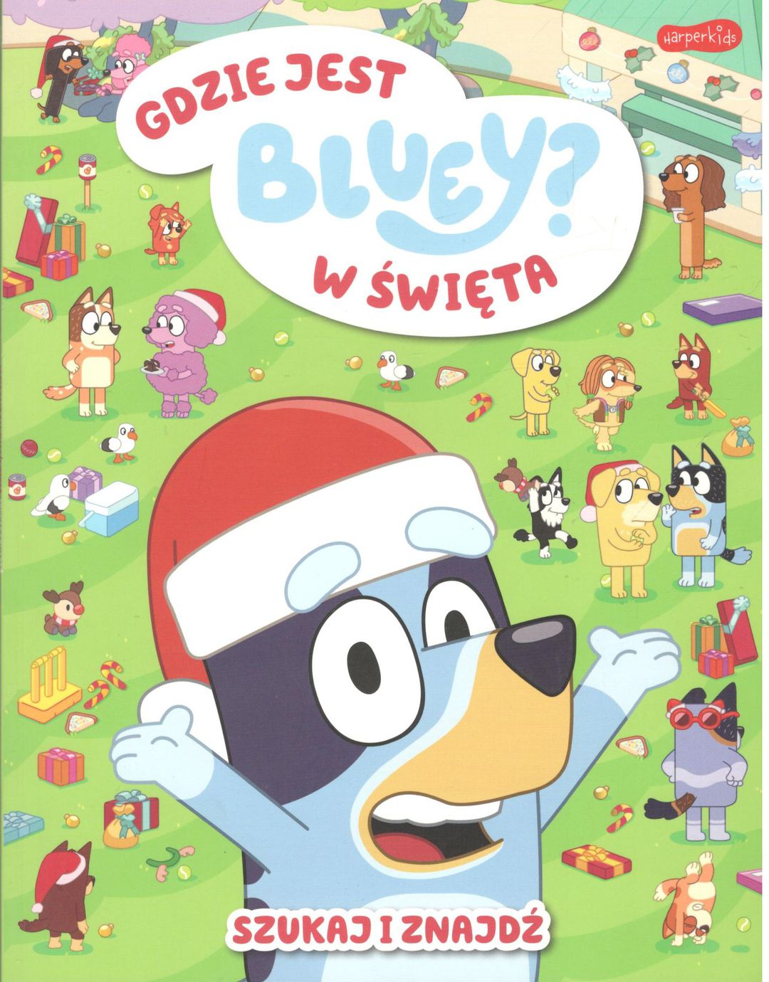 To będą prawdzie wesołe święta! Bluey i Bingo zapraszają do zabawy w szukanie świątecznych przedmiotów na każdej stronie. W mieście jest mnóstwo atrakcji, ale też wiele zagubionych elementów, które trzeba odnaleźć w różnej scenerii: w sklepie pełnym prezentów, w salonie rodziny Łączków, na plaży i w sąsiedztwie basenu wujka Prążka. Zabawa w wyszukiwanie elementów na ilustracjach to znakomity trening koncentracji, spostrzegawczości i uważności, a zadanie będzie łatwiejsze dzięki odpowiedziom, które znalazły się na końcu książki. Szukaj i znajdź to pomysł na zajęcie dziecka, która się nudzi, ale i świetna baza do rodzinnych konkursów czy zabaw z innymi maluchami w przedszkolu, na urodzinach, na przyjęciu świątecznym i przy wielu innych okazjach. Na podstawie pełnych detali i zabawnych motywów ilustracji maluch może również tworzyć własne opowieści albo uczyć się liczyć czy nazywać kolory. I to nie tylko w święta!